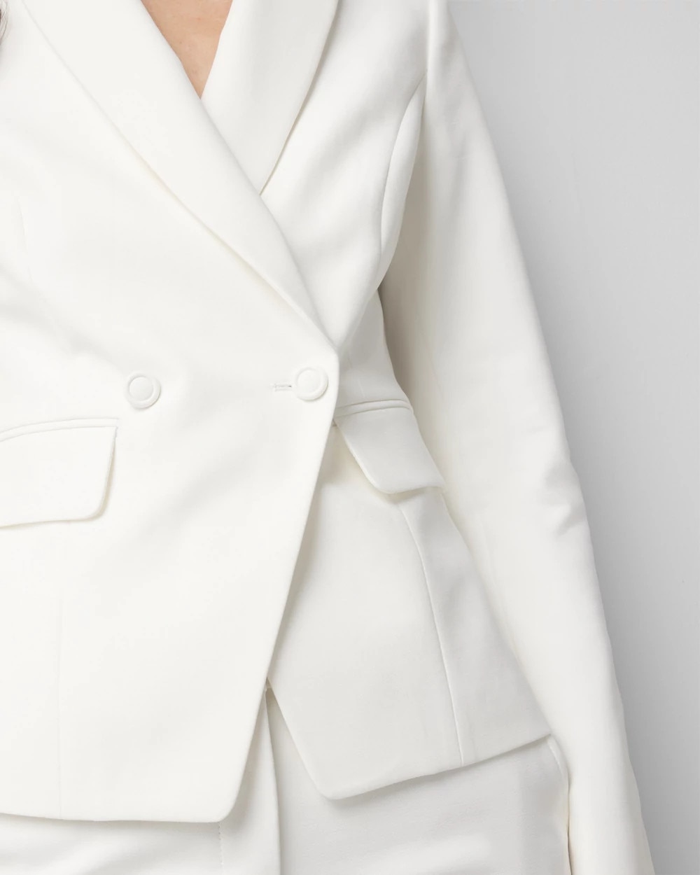Our WHBM® Studio Blazer has been updated in a shorter length with a two-button double-breasted cutaway silhouette. Wear it with matching pant or dress up your denim.
