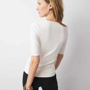 Our collection of WHBMFORME™ All Ways Stretch fashion tees provide flexibility and movement with a fabric that stretches in all directions. This classic V-neck tee with elbow sleeves will quickly become your go-to top this spring.