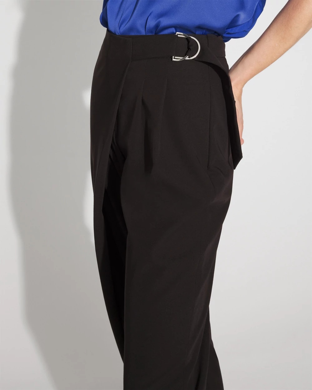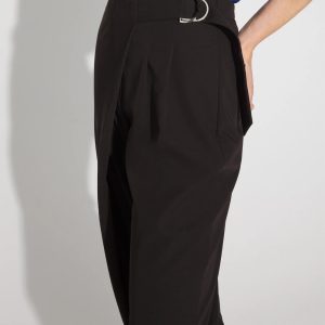 We’ve added a wrap waist to our tapered ankle pant silhouette. The wrap-front attaches with an adjustable D-ring belt, adding flair to a classic workwear look. Pair with heels and a blouse for chic office style.